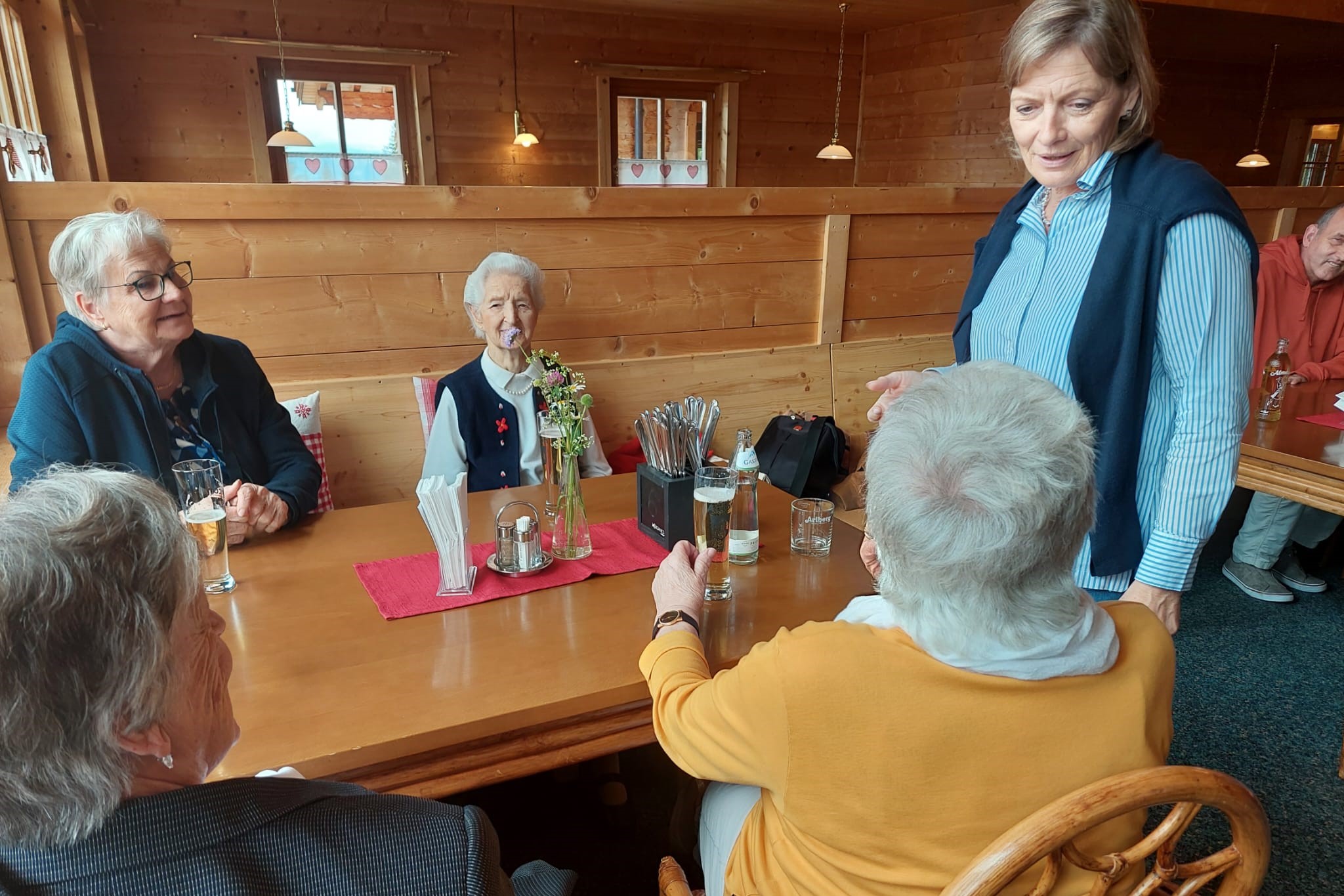 Kaum hatten die Bewohner:innen den Berggasthof erreicht, wurden sie herzlich empfangen. Der erste Programmpunkt war das gemeinsame Genießen der atemberaubenden Aussicht auf die noch leicht verschneiten Berge. Anschließend verwöhnte das Gasthofteam die Gruppe mit einem köstlichen Mittagessen. Nach dem Mittagessen zog es alle hinaus auf die Terrasse, wo sie die Sonne und das Panorama genossen. Ein Gruppenfoto, das die glücklichen Gesichter vor der malerischen Kulisse zeigt, rundete den Besuch ab. Alexander Welte, Leiter des SeneCura Sozialzentrums Herrenried, betont die Wichtigkeit solcher Ausflüge für das Gemeinschaftsgefühl: „Diese Ausflüge sind nicht nur eine willkommene Abwechslung und gesund, sie stärken auch die Verbundenheit untereinander.“ Gegen 14:30 Uhr trat die Gruppe die Rückfahrt an, doch die Freude war noch lange nicht vorbei. Zurück im Sozialzentrum klang der Tag mit Kaffee, Kuchen und einem Glas Wein aus. Solche Ausflüge sind ein wesentlicher Bestandteil des Lebens im SeneCura Sozialzentrum Herrenried, wo die Bewohner:innen nicht nur umfassende Betreuung genießen, sondern auch aktiv und selbstbestimmt am sozialen und kulturellen Leben teilnehmen können. Der nächste Ausflug ist bereits für Juni geplant und wird mit Vorfreude erwartet.
