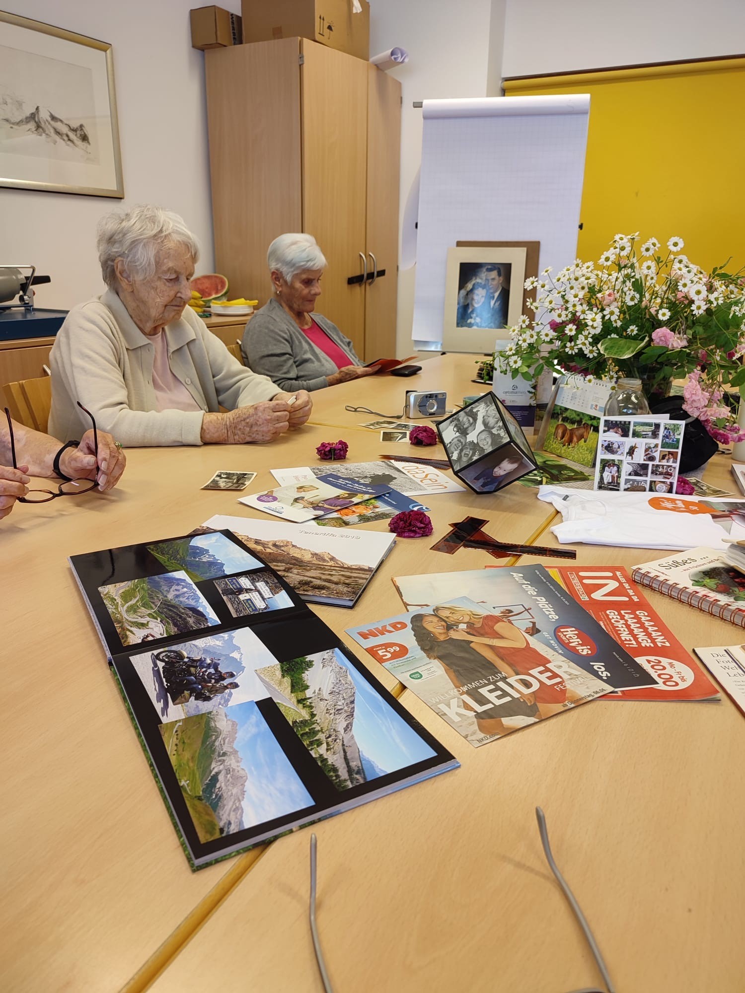 Das Thema Foto sowie Fotografie stand im Mittelpunkt dieses besonderen Nachmittags. Silvia, die derzeit die Schule für Sozialbetreuungsberufe absolviert, hat mit viel Hingabe und Kreativität ein abwechslungsreiches Programm zusammengestellt. Ziel war es, den Bewohner:innen die Möglichkeit zu geben, in Erinnerungen zu schwelgen und das Thema Fotografie näherzubringen. Der Nachmittag begann mit einer kurzen Einführung in die Thematik. Im Anschluss wurden gemeinsame Situationen besprochen, welche die Bewohner:innen zu Fotografien haben. Zuletzt konnten die Bewohner:innen sich noch fotografieren lassen und erhalten die Bilder als kleines Dankeschön von Silvia.