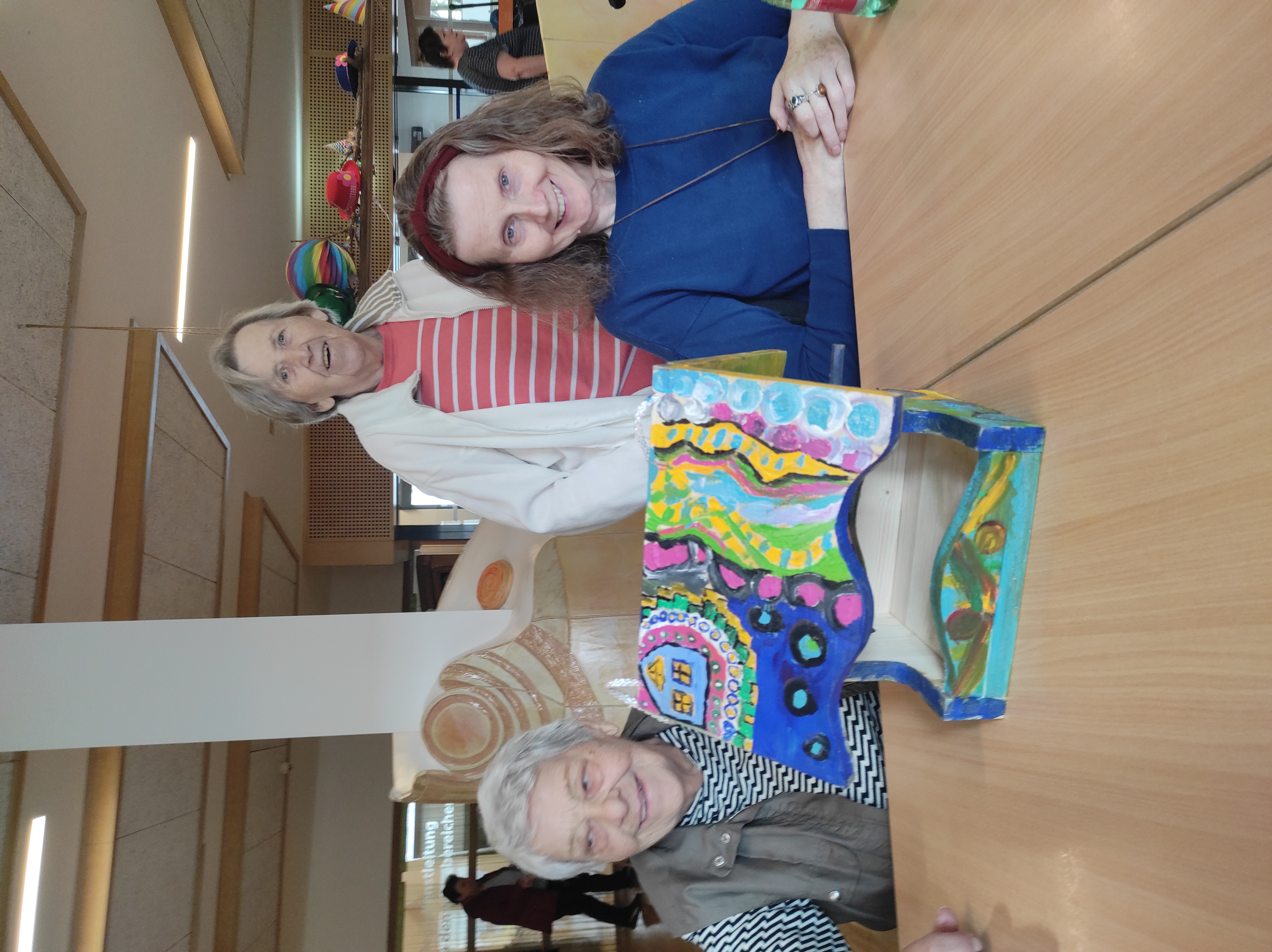 Der zweite Platz ging an das SeneCura Sozialzentrum Laurentius-Park Bludenz. Unter dem Titel „Zwitscher Stüble“ entstand ein liebevoll gestaltetes Vogelhaus, das die alpine Umgebung rund um Bludenz widerspiegelt. Beim Schleifen der Holzbauteile kamen die Bewohner Franz Malin, Günther Lindenbauer und Emil Wassle ordentlich ins Schwitzen, bevor die kreative Damenrunde mit den Bewohnerinnen Rosa Sahler, Anneliese Grafl und Maria Pichler zum Pinsel griff. Auf dem Dach sind nun die Berge zu sehen – mit etwas Glück erkennt man sogar den Muttersberg. Bäume an den Seiten symbolisieren Schutz und Geborgenheit.