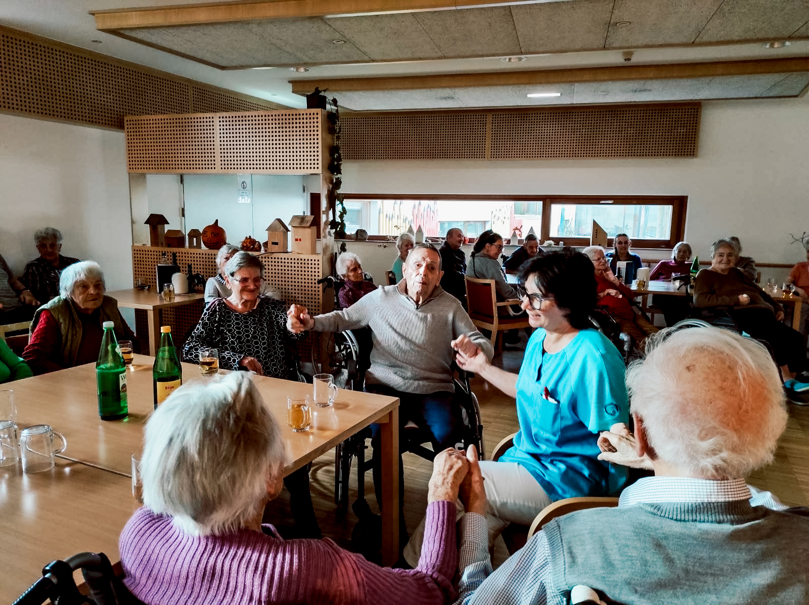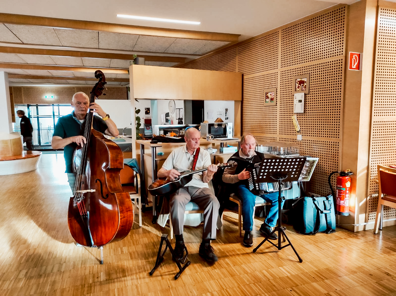 Im Anschluss fand ein weiterer Programmpunkt statt, der viel Freude bereitete: Ein mitreißender Musiknachmittag mit dem Trio „Zemagwürfelt“. Mit schwungvollen Melodien und bekannten Stücken sorgten die Musiker für beste Stimmung und zauberten vielen Bewohner:innen ein Lächeln ins Gesicht.